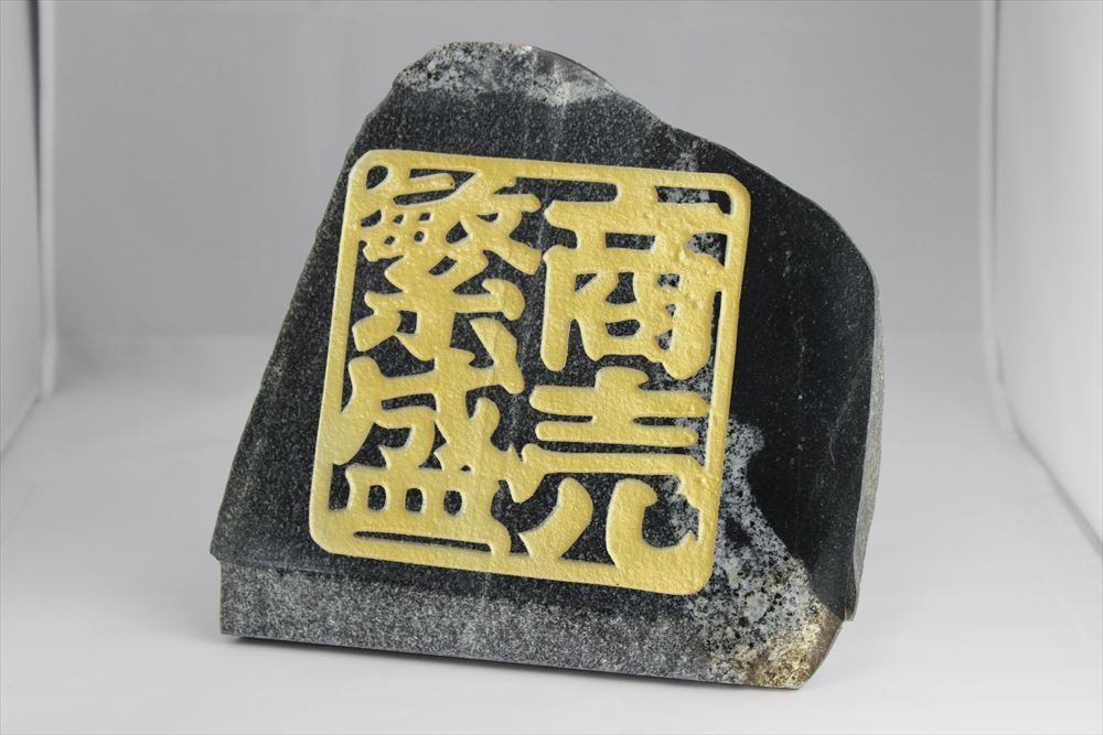 「商売繁盛」の文字を彫り込み、金(ゴールド)で色付けました。