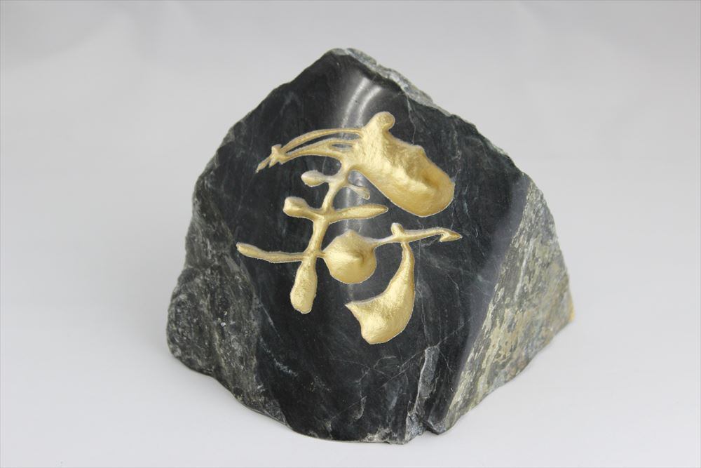 「寿」の文字を彫り込み、金(ゴールド)で色付けました。